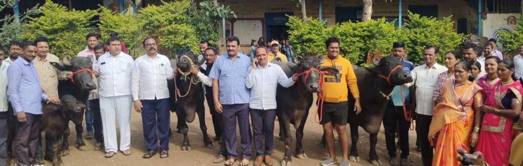 कोल्हापूर जिल्हा सहकारी दूध उत्पादक संघ (गोकुळ) यांच्या वतीने दुधवाढ कृती कार्यक्रम मोठ्या प्रमाणात राबवला जात आहे. या म्हैस दूध वाढ कृती कार्यक्रमांतर्गत केदारलिंग सहकारी दूध संस्था जठारवाडी ता.करवीर या संस्थेच्या दूध उत्पादकांनी के.डी.सी.सी. बँक, सिद्धेश्वर विकास सेवा संस्थेच्या माध्यमातून मुऱ्हा जातीच्या २० म्हैशी वाराणसी (उत्तरप्रदेश) येथून खरेदी केल्या त्याचे जठरावाडी येथे गोकुळचे चेअरमन अरुण डोंगळे यांच्या हस्ते व मान्यवरांच्या …