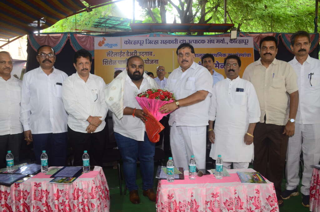 याप्रसंगी चेअरमन अरूण डोंगळे, माजी चेअरमन व जेष्ठ संचालक विश्वास पाटील, संचालक बाबासाहेब चौगले, अजित नरके, शशिकांत पाटील–चुयेकर, नंदकुमार ढेंगे, कर्णसिंह गायकवाड, संभाजी पाटील, प्रकाश पाटील, सुजित मिणचेकर,बाळासो खाडे, अबरिशसिंह घाटगे, कार्यकारी संचालक योगेश गोडबोले, व संघाचे अधिकारी तसेच शिरोळ तालुक्यातील दूध संस्थाचे चेअरमन ,संचालक,प्रतिनिधी,दूध उत्पादक मोठ्या प्रमाणात उपस्थित होते.