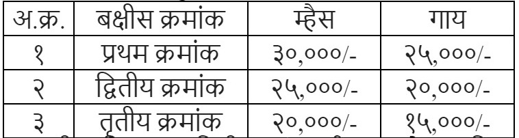या स्पर्धेतील विजेत्यांना म्हैस १ ते ३ क्रमांक व गाय १ ते ३ क्रमांक अशा सहा क्रमांकांना बक्षीस, शिल्ड व प्रमाणपत्र देऊन ‘गोकुळ श्री’ या पुरस्काराने सन्मानित करण्यात येणार आहे. बक्षीसाची रक्कम पुढीलप्रमाणे.