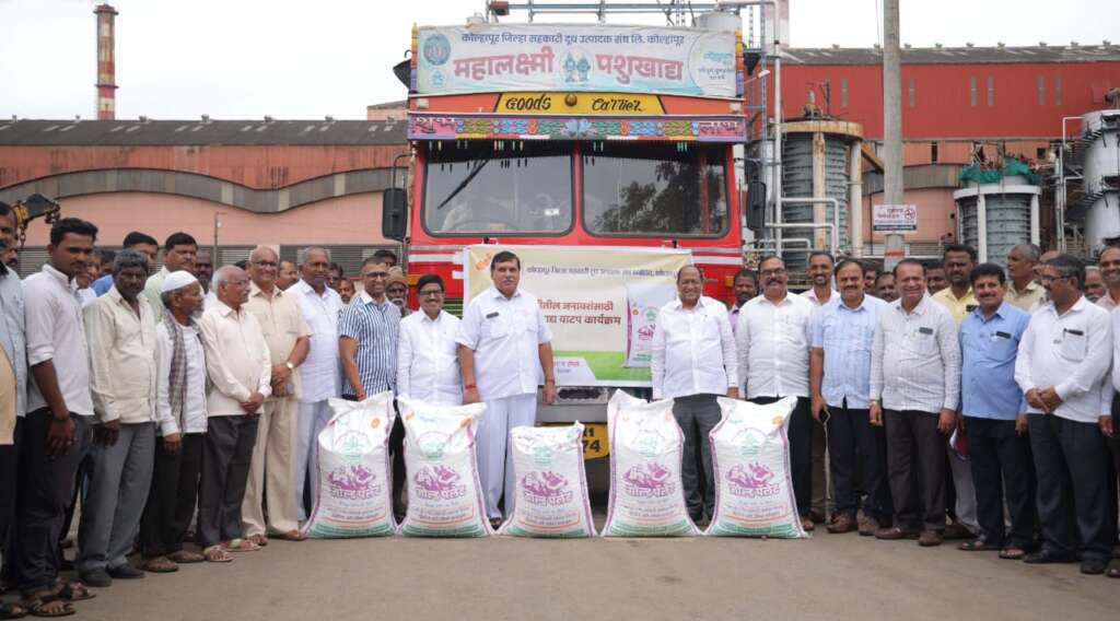 त्याकरिता गोकुळ कडून आज गुरुदत्त शुगर्स च्या छावणीला आठ टन पशुखाद्य तसेच पार्वती सूतगिरणी मौजे तेरवाड येथील छावणीतील २०० जनावरांना करिता चार टन पशुखाद्य असे एकूण १२ मे.टन महालक्ष्मी पशुखाद्य संघाचे चेअरमन अरुण डोंगळे व सर्व संचालक मंडळ, प्रमुख मान्यवर, संघाचे अधिकारी यांच्या उपस्थितीत वाटप करणेत आले. तसेच त्या भागातील जनावरांच्या छावण्यांना भेट दिली.