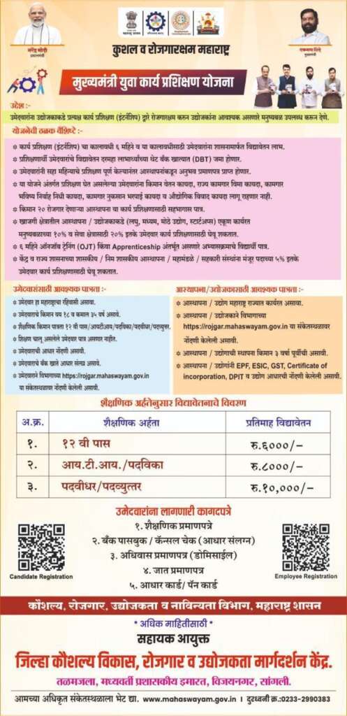 कौशल्य रोजगार उद्योजकता व नाविन्यता विभाग महाराष्ट्र शासन विभागामार्फत.”मुख्य मंत्री युवा कार्य प्रशिक्षण योजना (CMYKPY) अनुषंगाने रोजगार भरती मेळावा आयोजित केला आहे. यामध्ये शिरोळ तालुक्यातील जवळपास १०० इंडस्ट्रीज, आस्थापना सहभागी होणार आहेत. आणि त्यांचेमार्फत जवळ जवळ ४०० ते ५०० उमेदवारांची भरती होणार आहे. हा मेळावा जयसिंगपूर कॉलेज जयसिंगपूर येथे, मंगळवार दि. २४/०९/२०२४ रोजी सकाळी नऊ ते तीन या वेळेत आयोजित केला आहे. ईच्छुक उमेदवारांची नोंदणी करून मुलाखती घेतल्या जाणार आहेत. १८ ते ३५ वयोगटातील १२ वी , डिप्लोमा/आयटीआय तसेच पदवीधर झालेले उमेदवार मुलाखतीसाठी राहतील. तरी गरजूंनी बहुसंख्येने उपस्थित राहुन याचा लाभ घ्यावा, असे आवाहन कौशल्य रोजगार उद्योजकता व नाविन्यता विभागामार्फत करण्यात आले आहे.