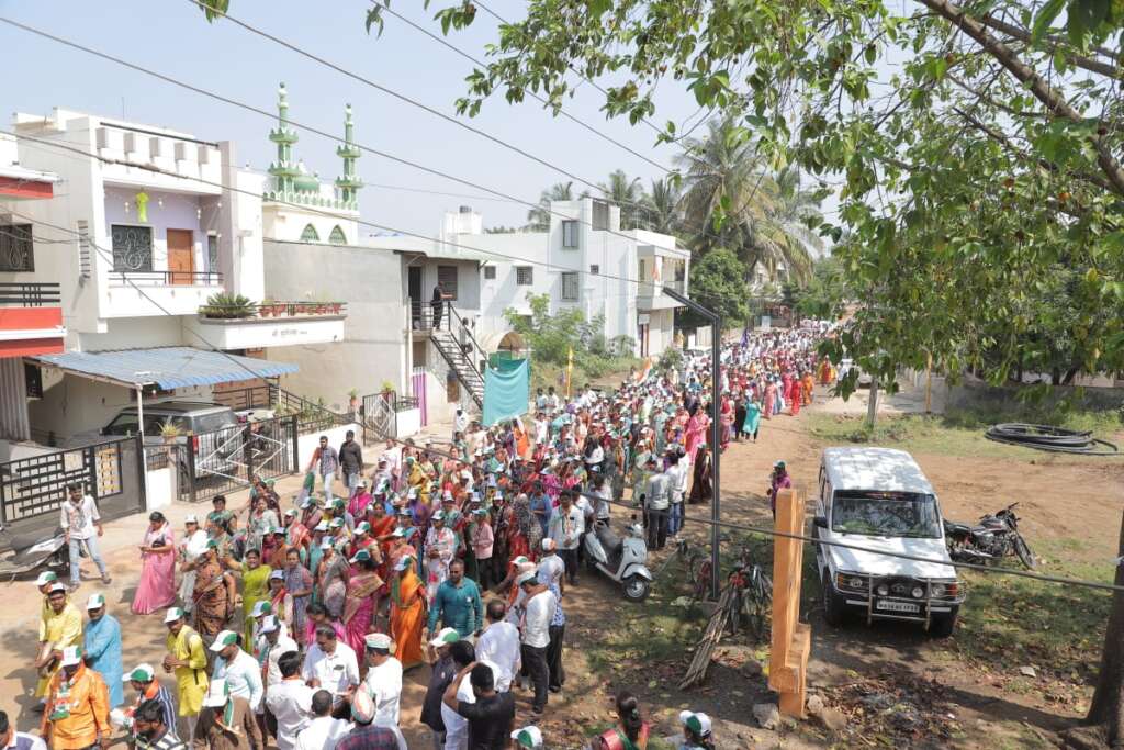 नांदणी नाक्यापासून पदयात्रेला सुरुवात झाली. यानंतर शाळा नंबर नऊ, कुंभार गल्ली, सुदर्शन चौक, शिवशक्ती कॉलनी, समडोळे मळा, व्ही बॉईज, महालक्ष्मी चौक, चाँदतारा मस्जिद, हनुमान चौक, रणवीर चौक, संभाजीनगर, जयसिंगनगर, रेणुका चौक, क्रांती चौक ते सिद्धेश्वर मंदिर येथे पदयात्रेची सांगता करण्यात आली.