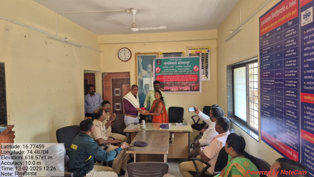 शिरोळ तालुक्यातील निमशिरगाव येथे ग्रामपंचायत वतीने वनवनवा जनजागृती सभा आयोजित करण्यात आली होती. निसर्ग ठेवा आणि वनसंपदा वाचवण्याच्या दृष्टीने जनजागृती व्हावी या उद्देशाने करवीर चे वनक्षेत्रपाल रमेश कांबळे यांच्या अध्यक्षतेखाली सभा घेण्यात आली. या सभेत रमेश कांबळे आणि हातकणंगले चे वनपाल संजय कांबळे यांनी वनाचे महत्त्व आणि वन वनव्याचे होणारे दुष्परिणाम याचे महत्त्व पटवून देऊन मौल्यवान मार्गदर्शन केलं. या सभेला तमदलगेचे वनरक्षक अरुण खामकर हातकणंगले वनरक्षक मंगेश वंजारे निमशिरगावच्या सरपंच अश्विनी गुरव ग्रामसभा सदस्य आणि ग्रामस्थ मोठ्या संख्येने उपस्थित होते..