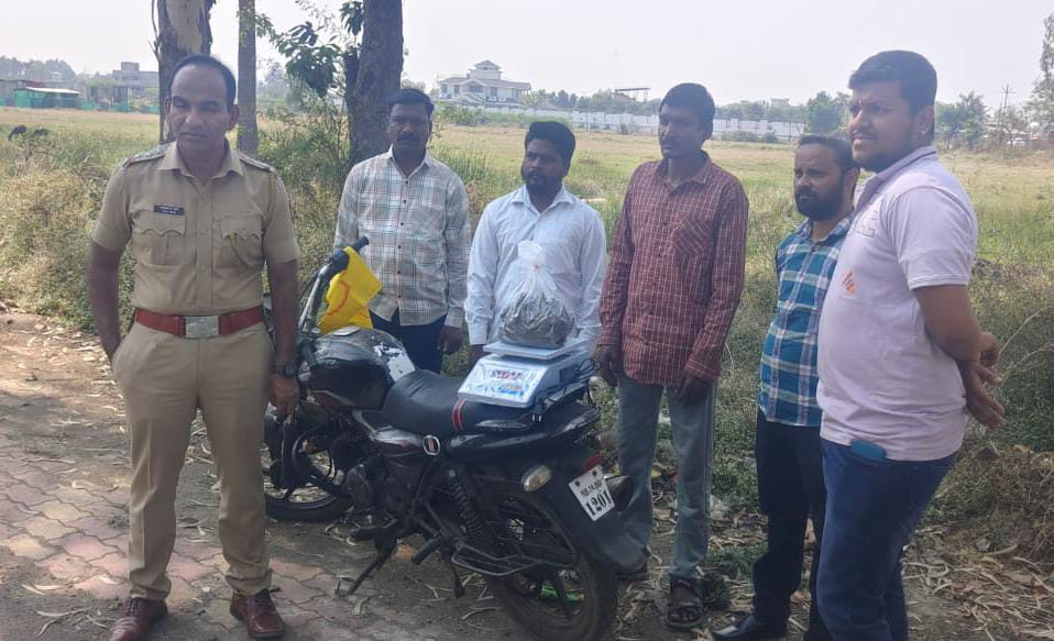 वरिष्ठ पोलीस अधिकाऱ्यांच्या आदेशानुसार गुरुवारी दिनांक १३ रोजी दीड वाजण्याच्या सुमारास जयसिंगपूर शहरातील मनीषा ऑटोमोबाईल शोरूम जवळ महादेव विठ्ठल धोत्रे ( वय ३९, रा. बावन्न झोपडपट्टी, जयसिंगपूर ) याने साडेपाच हजार किंमतीचा ४६३ ग्रॅम वजनाचा गांजा हा हैदर इराणी ( रा. इराणी मस्जिदजवळ, राजीव गांधीनगर, जयसिंगपूर) याच्याकडून विकत घेतला होता. पोलिसांनी या दोघा संशयित आरोपींना विनापरवाना गांजा जवळ बाळगल्या प्रकरणी ताब्यात घेऊन त्यांच्याविरुद्ध गुन्हा दाखल केला आहे. त्यांच्याकडून गांजासह मोबाईल तसेच बजाज कंपनीची मोटरसायकल असा एकूण ६० हजार ५०० रुपये चा मुद्देमाल हस्तगत केला आहे. अधिक तपास पोलीस उपनिरीक्षक प्रवीण माने करीत आहेत