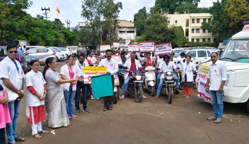 जिल्हा कार्यक्रम अधिकारी दीपा शिपुरकर यांनी नेतृत्व केलेले या बाईक रॅलीचे उद्घाटन अतिरिक्त जिल्हा शल्यचिकित्सक डॉ. सरिता थोरात यांच्या हस्ते हिरवा झेंडा दाखवून झाले.दसरा चौक- खानविलकर पंप- भगवा चौक बावडा -शुगर मिल चौक ते सर्किट हाऊस-ताराराणी चौक -सीबीएस स्टँड ते परत सीपीआर या मार्गावर रॅली संपन्न झाली.