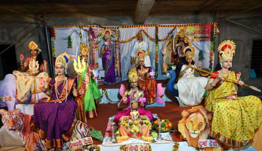निढोरी ता.कागल येथील भैरवनाथ मंदिर सार्वजनिक सभागृहामध्ये दसरा नवरात्रौ महोत्सव निमित्त नऊदुर्गा देवींचा चैतन्य देखावा प्रजापिता ब्रह्माकुमारी विश्वविद्यालय उपसेवा केंद्र -मुरगुड च्या वतीने सादर करण्यात आला