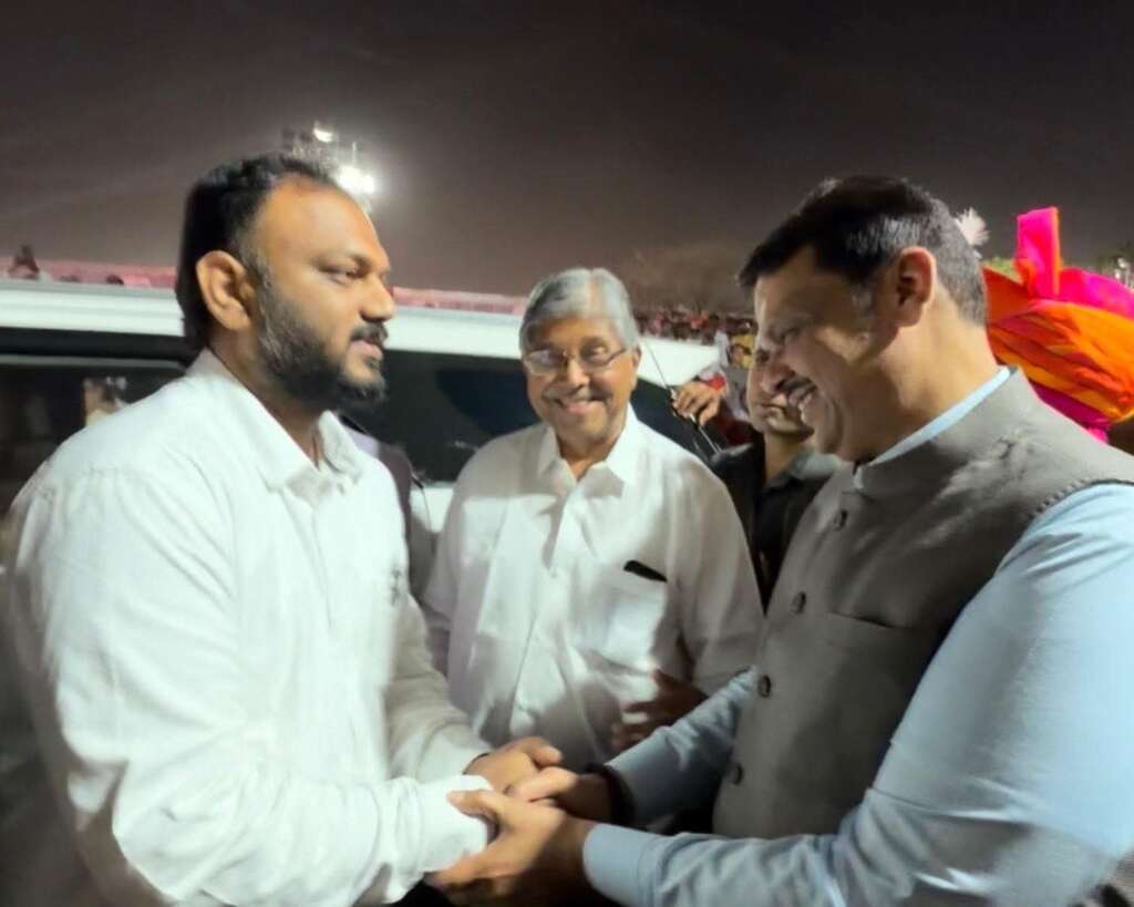 हुपरी येथील जवाहर शेतकरी साखर कारखाना परिसरात आयोजित करण्यात आलेल्या शाही विवाह सोहळ्यात राज्याचे मुख्यमंत्री देवेंद्र फडणवीस आणि सांगली महानगरपालिकेचे महापौर धीरज सूर्यवंशी यांची भेट होऊन विविध विषयांवर सकारात्मक चर्चा झाली.हा सोहळा केवळ कौटुंबिक आनंदाचा क्षण न राहता सांगली शहराच्या भविष्यातील विकासासाठी महत्त्वपूर्ण ठरणारा संवादाचा मंच ठरला.या प्रसंगी सांगली महानगरपालिकेच्या कारभारासंदर्भात तसेच शहरातील प्रलंबित विकासकामांबाबत महापौर सूर्यवंशी यांनी मुख्यमंत्री फडणवीस यांच्याशी चर्चा केली.